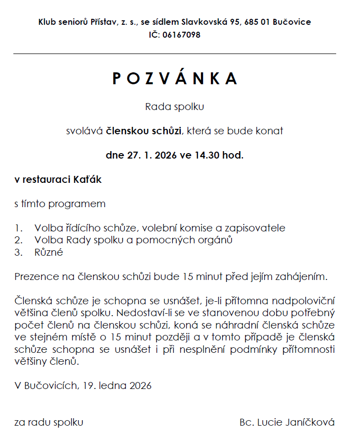 Slavkovská 95 685 01 Bučovice Vedoucí klubu: Bc. Lucie Janíčková